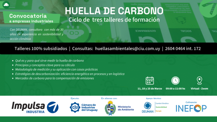 La propuesta contempla tres talleres complementarios que abordan los fundamentos técnicos para el cálculo de la Huella de Carbono (con referencia a la norma ISO 14064), la identificación de acciones de descarbonización en procesos productivos y el análisis de la compensación de emisiones y los mercados de carbono. Las capacitaciones estarán a cargo de DEUMAN, consultora internacional especializada en sostenibilidad y acción climática.