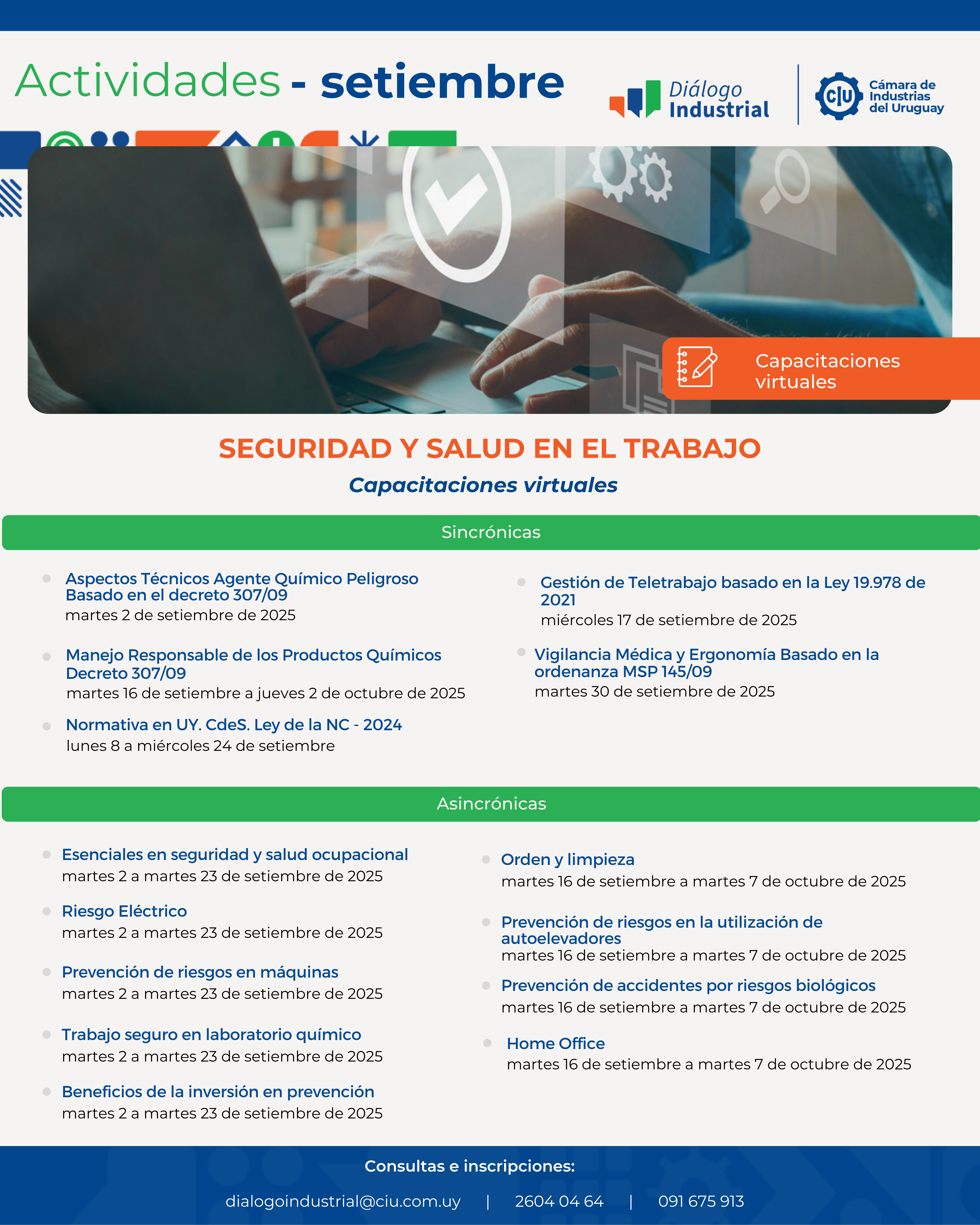 En el marco de nuestro proyecto Diálogo Industrial, te invitamos a conocer la propuesta de capacitación, pensada especialmente para el sector industrial, con modalidades sincrónicas y asincrónicas para mayor flexibilidad. Conocé las actividades del mes de enero aquí